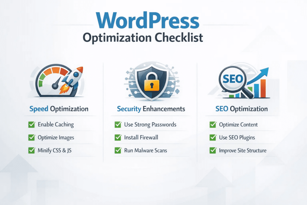 Once WordPress is installed, optimizing your site is crucial for speed, security, and SEO.