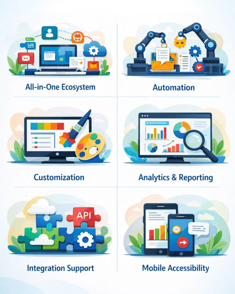 Zoho is not just a software — it’s a complete business infrastructure. Here are its most powerful features explained in depth: